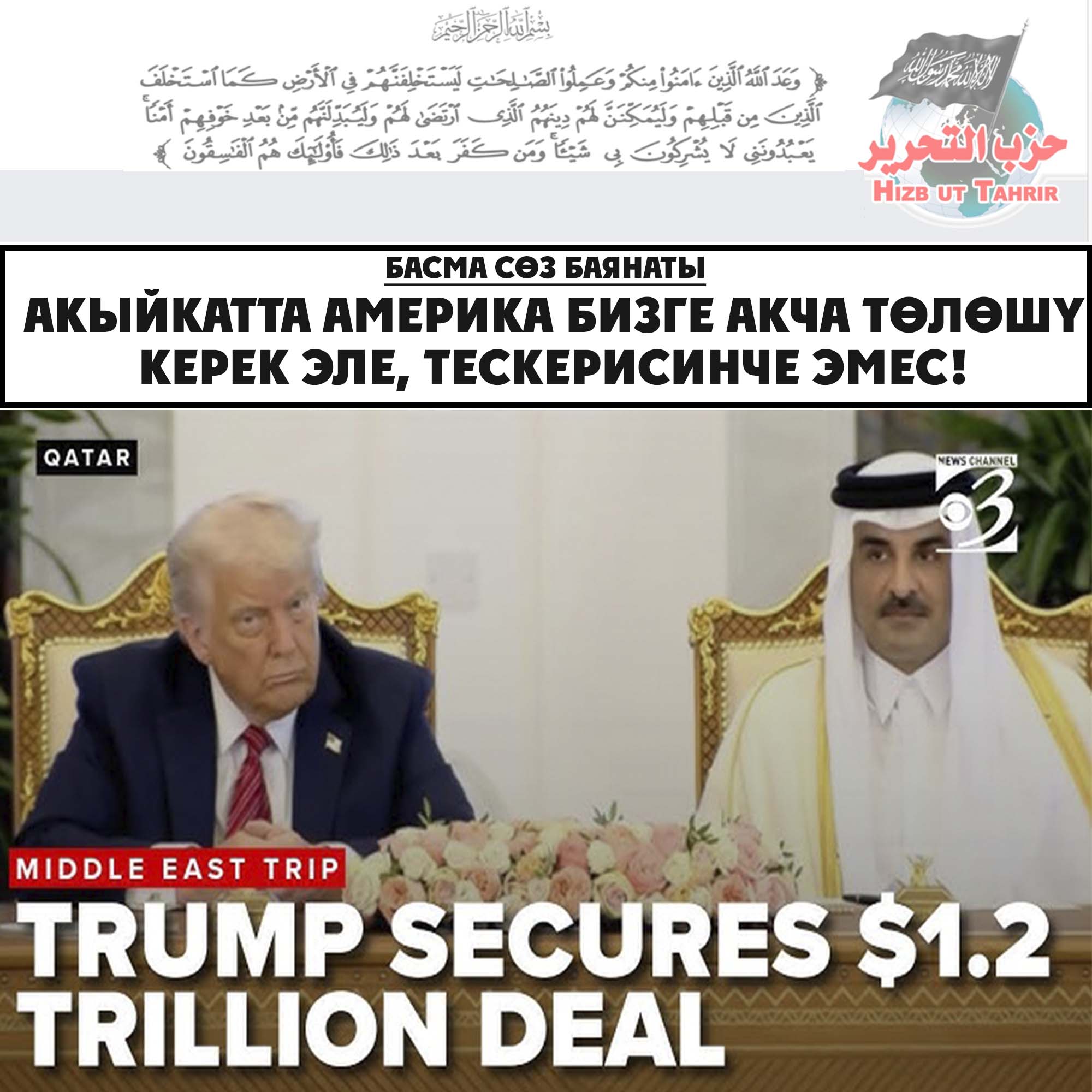 Биз үммөткө болгон ишенимибизди жана үмүтүбүздү сактап келебиз. Трамп жана анын жалданма башкаруучулары үммөттү салык төлөөгө, кылмышкер яхудий мамлекети алдында багынууга, же болбосо Исламга касташкан секуляризмди орнотууга мажбур кылгысы келгени менен, үммөт буларга макул болбойт!